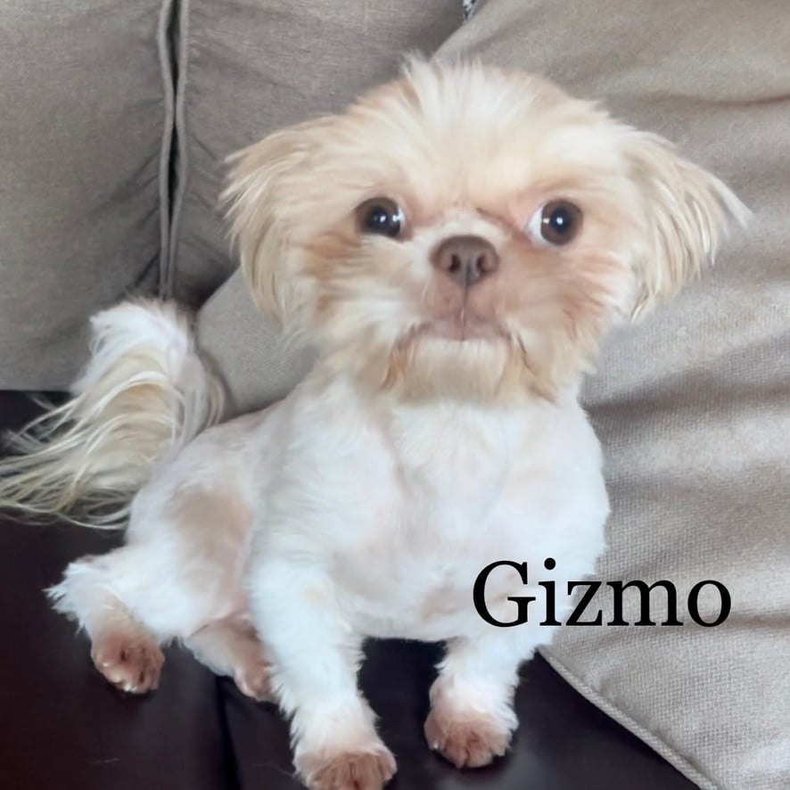 Gizmo is the ultimate love bug and he absolutely adores everybody he meets. If there is an empty lap, Gizmo is in it! He loves to smoosh the side of his face right against your chest and gaze up at you with those big, adoring Shih Tzu eyes. It is completely irresistible. His funniest quirk? Despite being one of our smallest dogs, he has the loudest snore in the entire house—sometimes I actually think it is my husband! Gizmo consistently passes down his incredibly sweet nature, his small size, and those beautiful parti patterns to his puppies.